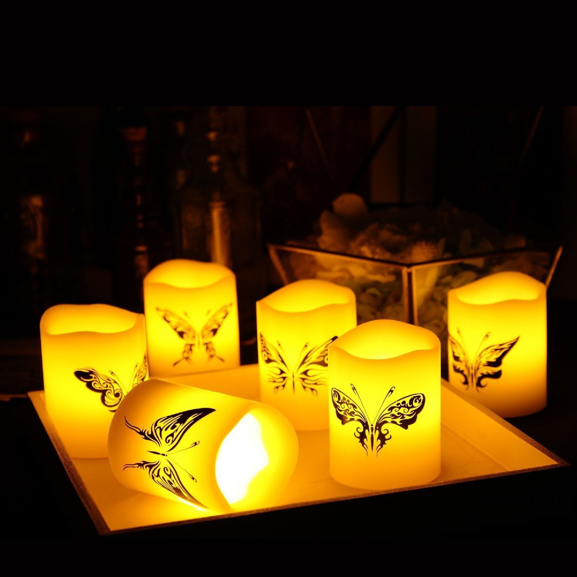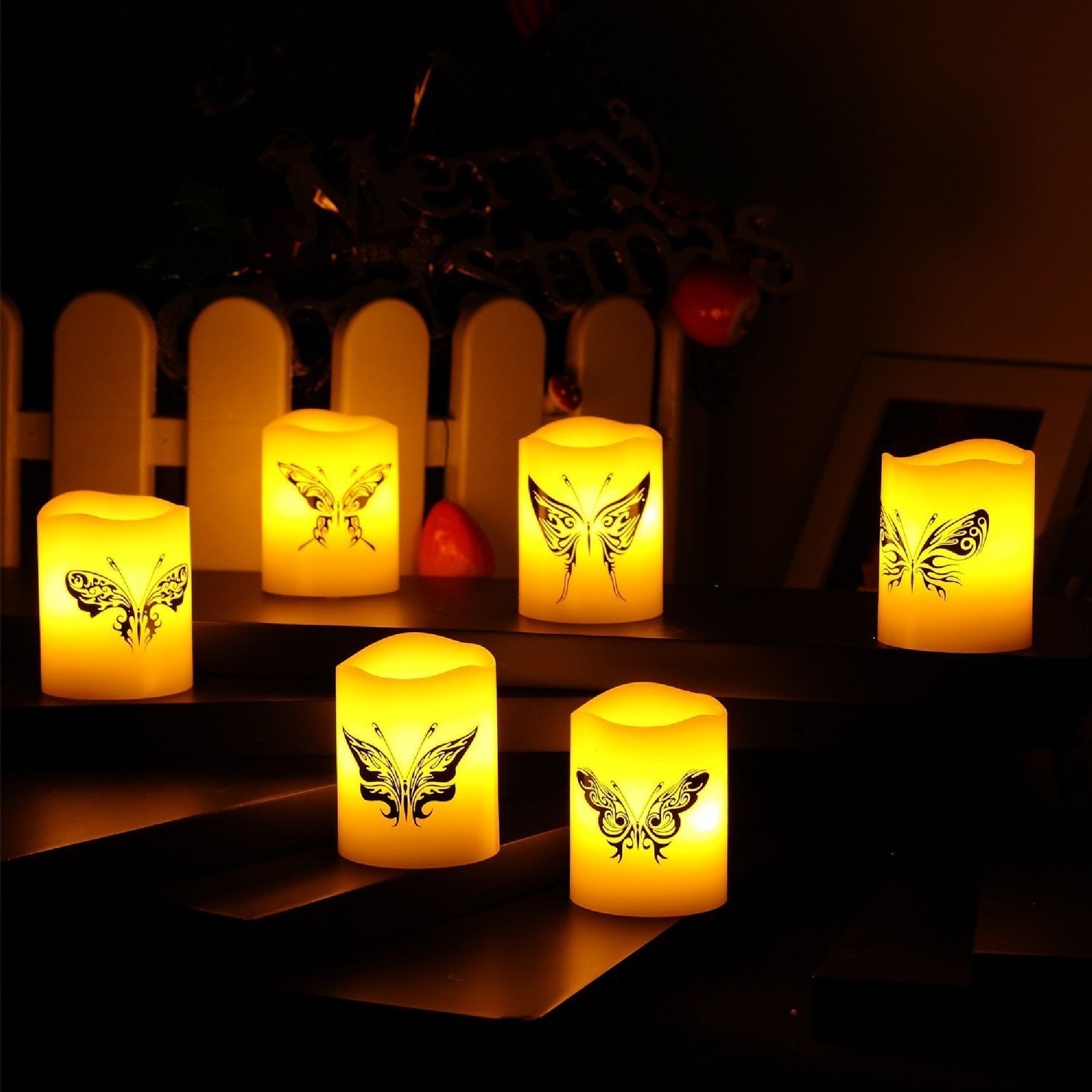 Candle Choice 6 PCS Real Wax Flameless Candles with Timer, Pillar Candles, Flameless Votives with Timer, Battery Operated LED Candles, Long Battery Life 400+ Hours, with Butterfly Decal, 2″x2.4″