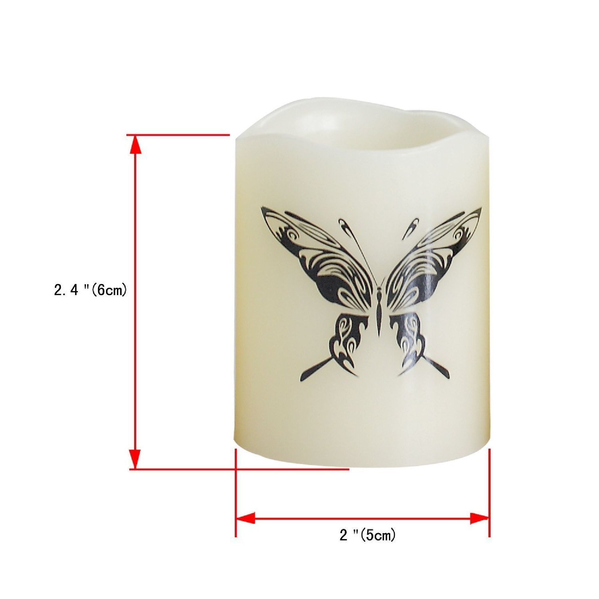- MADE FROM REAL WAX and MELTED EDGE DESIGN, these flameless votive candles have a very NATURAL look. PLUS, butterfly DECALS make these candles very beautiful.